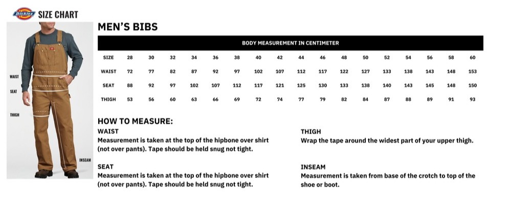 Specifications for Men's Canvasduck Canvas Bib