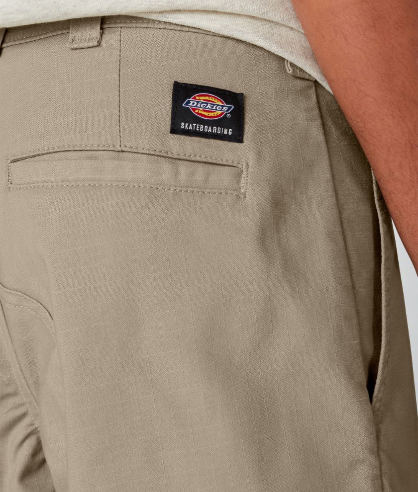 Dickies Skateboarding Cargo Shorts were built knowing your need for durable skate gear. The stretch ripstop fabrication allows for added movement in a durable construction that won’t rip or tear over time. An inseam gusset provides reinforced construction to avoid blow-outs while giving you a wider range of motion. The dual cargo pockets have been sewn down at the flap to keep your contents safe and secure while skating. Plus, a stay stitch at the rear pockets helps avoid bunching when you are active. Complete with Dickies Skateboarding interior red detailing and black herringbone pocket bags for comfort, these shorts also feature a strong metal button front closure that won’t give out when you bail.