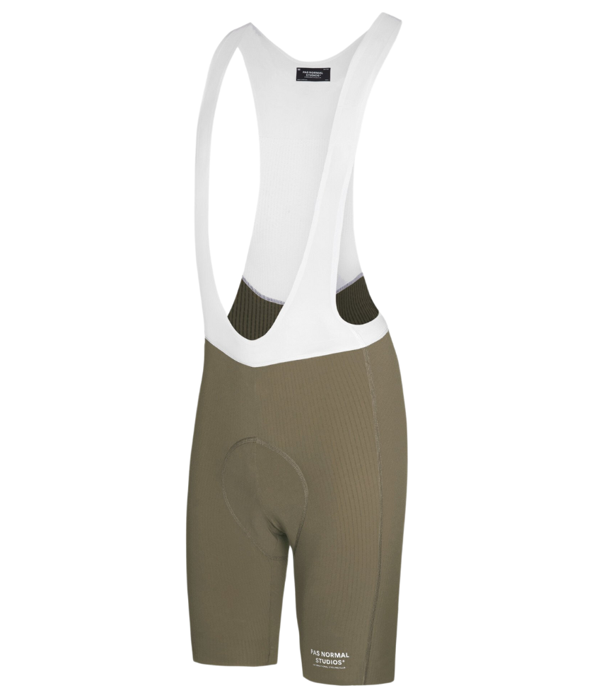 The Solitude Bibs are constructed from proprietary fabric developed for Pas Normal Studios. The bibs feature unique functional 3D pathways to create air channels to transport heat away from your body effectively. These channels cover the entire area from the hems to the back panel of the bibs, allowing air to circulate easily between your skin and the fabric. The Solitude bibs also provide breathability with the exposed polyester yarn on the inside of the bib shorts. The Solitude Bibs are updated with a new, taller striped silicone in the leg opening to distribute the grip better.