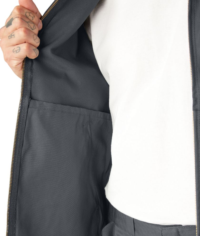 The Dickies Men's Jacket is a bona fide clothing classic, and for very good reasons. From its military roots, it has since continued to evolve to become a mainstay in authentic workwear styling. Today, the Unlined Eisenhower Jacket offers a general, universal fit for all. Features like the brass zipper, slash front welt pockets, and hidden interior pocket further enhance its functionality along with its style. And the twill fabric can hold up even in industrial washing machines.