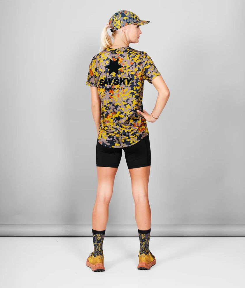 The SAYSKY Combat Cap is a lightweight, machine washable running cap with an all-over Saysky camo print. The cap is designed with a soft pre-curved brim offering both sun-protection, comfort and easy packability on the run.