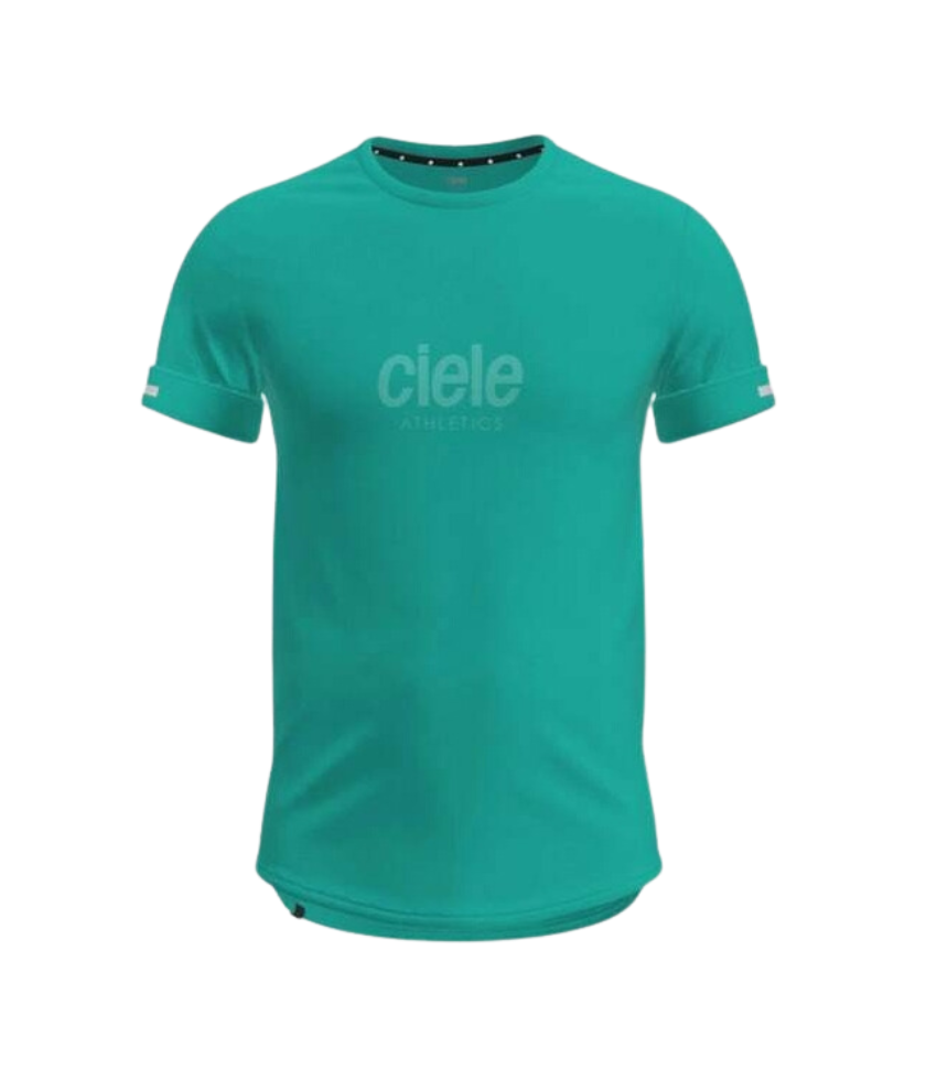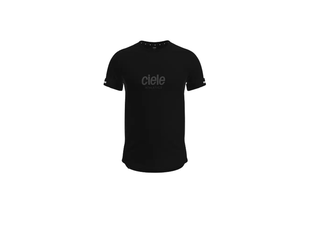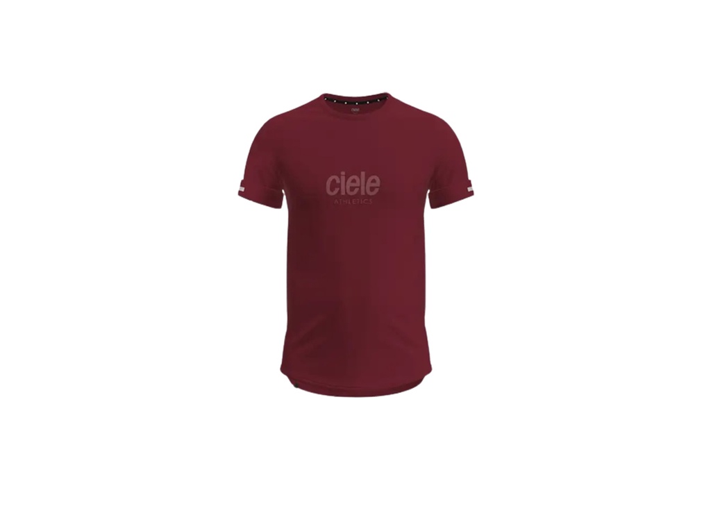 represent, represent. with our original Ciele Athletics logo front and centre, the NSBTshirt – Core Athletics – cab edition uses the comfort and cooling effect of organic cotton, in combination with recycled polyester to bring you a moisture wicking, quick drying run ready t-shirt. we’ve added concealable reflective details, for that unplanned night run home, flatlock stitching for comfort, and an all natural antimicrobial to defend against unwanted odours and harmful microbes that plague your everyday activewear. the water based print is designed with breathability in mind, so it won’t get wet and sticky and uncomfortable like most printed t’s do during a run. this is the ciele athletics not so basic t-shirt. wear it every day but race day.