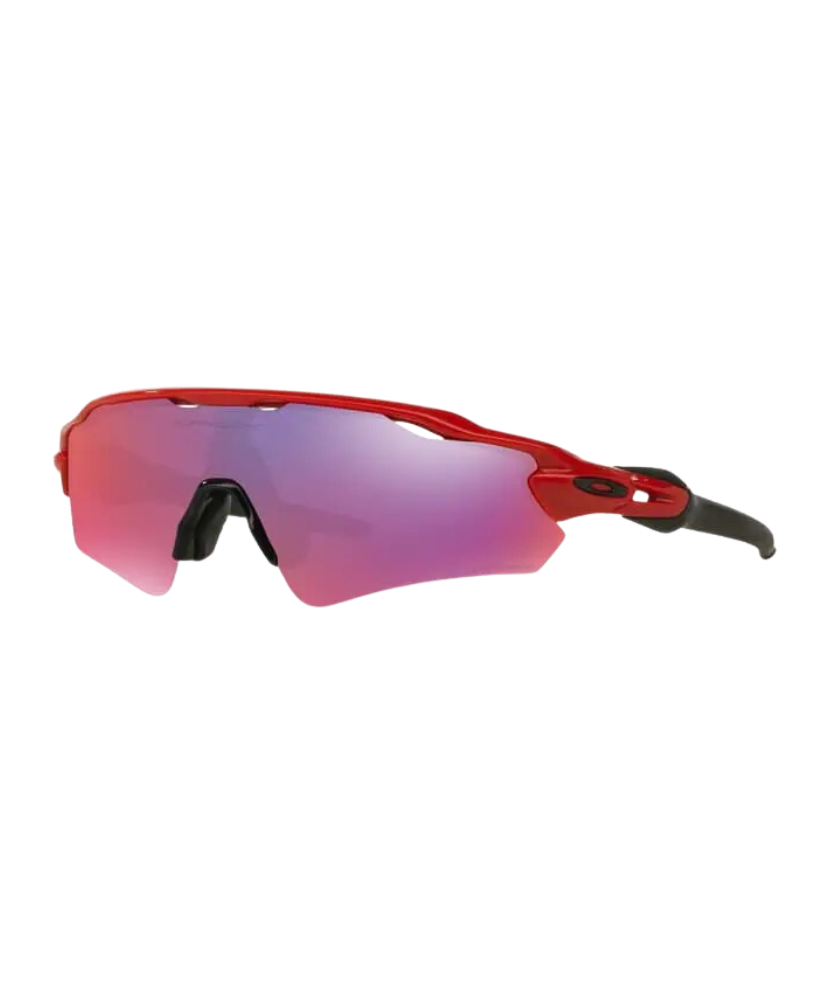 Oakley Radar EV Path sunglasses , red frame, wide lenses, Prizm Road lenses, suitable for cycling. can look at the road gravel more clearly This is an Asian site. Tight fit for people with small nose bridges. can solve the problem of glasses falling off the nose The product comes with a black zippered eyeglass case. Oakley eyeglass cleaner bags