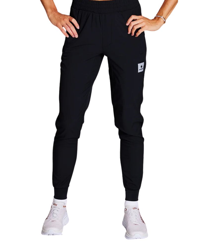 The SAYSKY Pace Pants are an all-time favorite. It's a casual pair of running pants, designed to go fast on the run and look cool on the go. It's a unisex pants with a narrow fit from the knees and down to the ankle cuffs. They come in black with a reflective woven SAYSKY label in white and a small reflective print on the left calf.