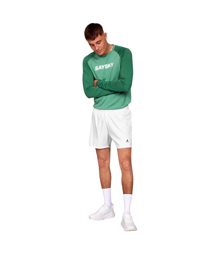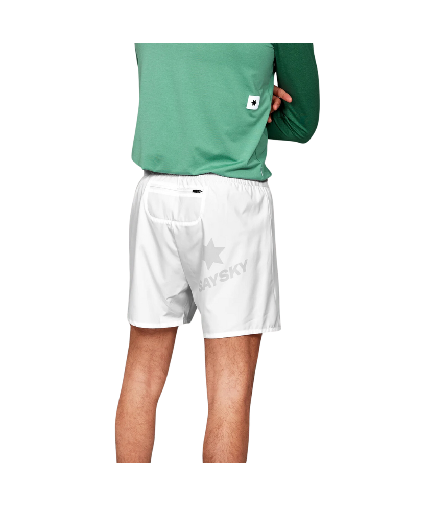 The SAYSKY Pace Shorts 5'' are a classic pair of running shorts - just a whole lot better. This is one of the all-time best-sellers and for good reasons. They're incredibly lightweight and breathable, with a regular fit designed for high performance. This version is white with a woven SAYSKY label on the front and a SAYSKY logo on the back.