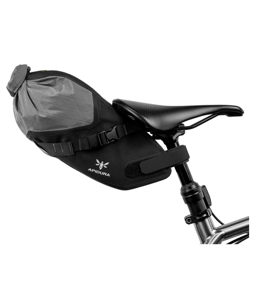 The saddle bag is available in three sizes for adventures long, short & in-between, with all three being optimized for bikes with limited clearance. Additionally, the roll-down compression and closure system mean the saddle bag’s volume can be tailored precisely to fit a range of packing needs. This bag is compatible with dropper posts when used with a Dropper Post Adapter.