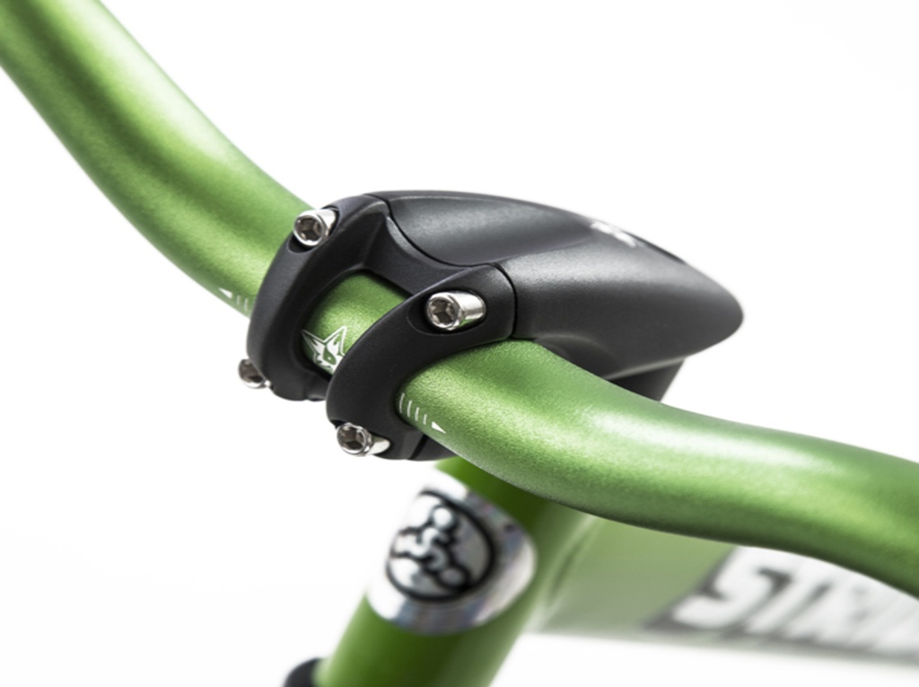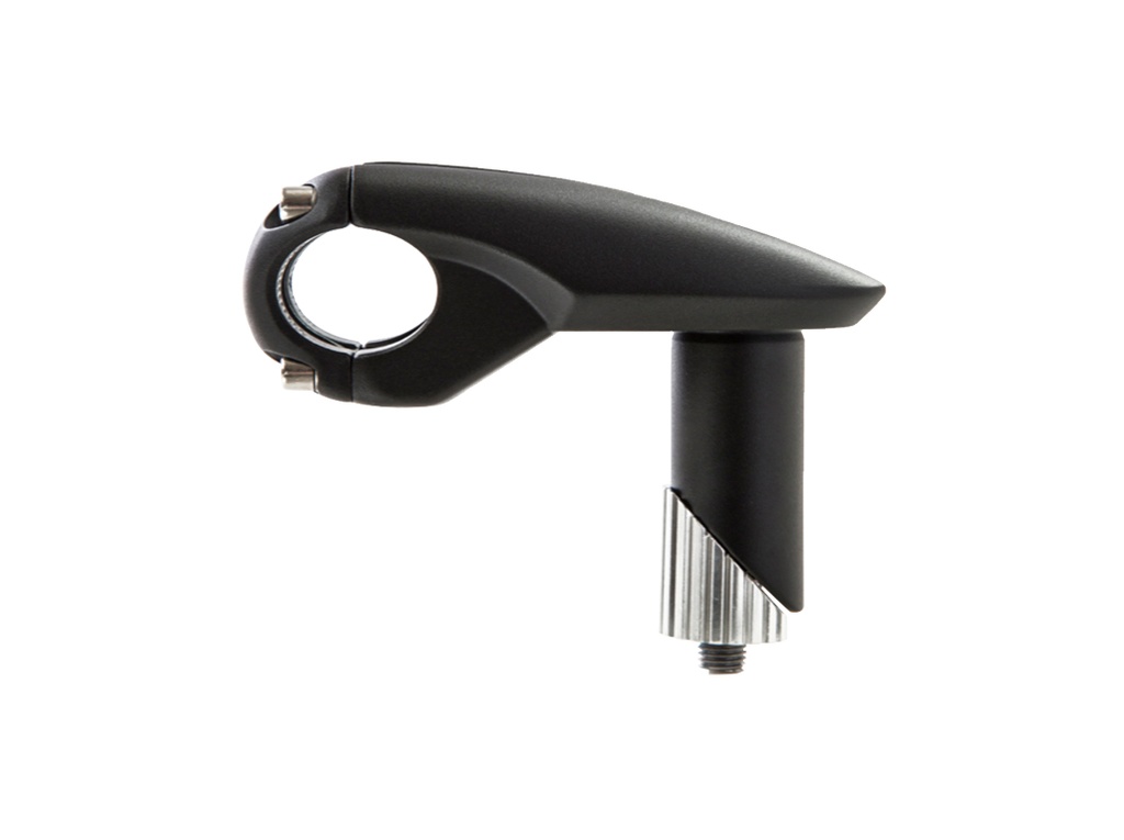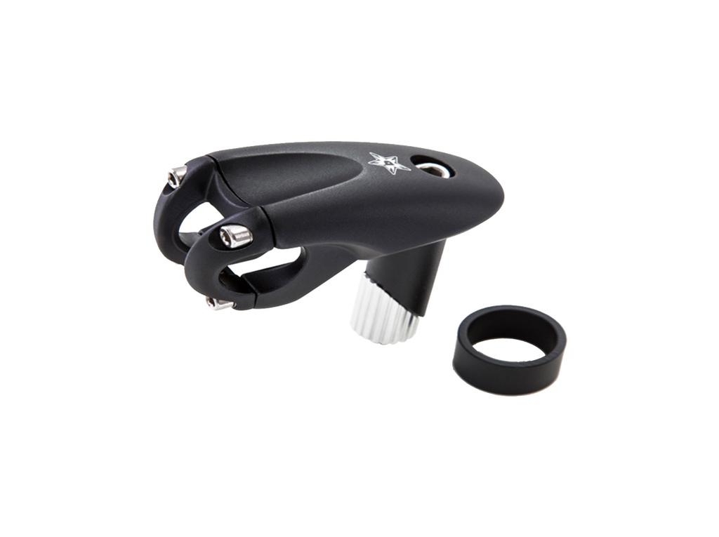 It is a quill type stem in which a stem and a stem adapter are integrated. In consideration of safety, as a countermeasure against accident at the chest against the stem head concerned with balance bikes. The shape is best suited for balance bikes which eliminated irregularities on the top of the stem is characterized. In addition, the specification of the rise angle 0 ° from the upper part of the front column makes it possible to lower the position of the handlebar grip and will create a more lucid racing riding style. As for the mounting method, you can choose either the method of fixing with the included center bolt or the method of fixing with the clamp like the genuine handle, by removing the attached parts.
