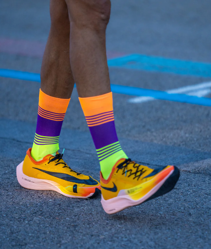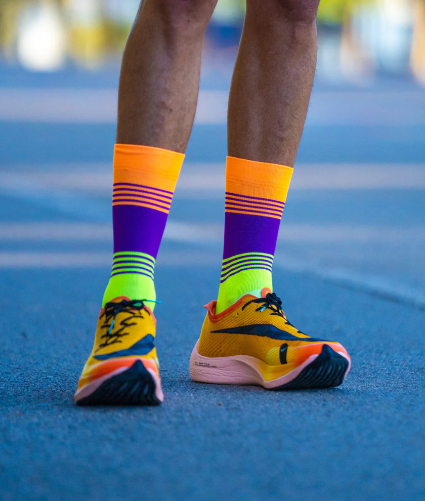 Running socks with greater support in the ankle and metatarsal areas. They offer a medium level of compression that helps blood circulation and reduces inflammation in longer runs. The heel and toe are made of COOLMAX® terry cloth to minimize impact, creating a greater sensation of comfort and breathability. They prevent and avoid the appearance of blisters.