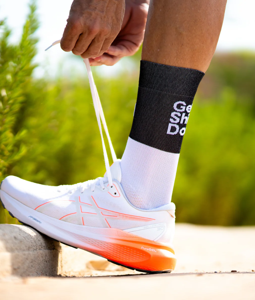 Running sock with greater support in the ankle and metatarsal area. It has a medium compression level that helps blood circulation and reduces inflammation during longer runs. The heel and toe are made of COOLMAX® terry cloth to minimize impact, creating a greater feeling of comfort and breathability. Prevents and prevents the appearance of blisters.