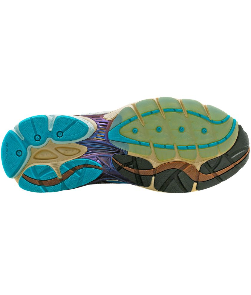 The 2000s called. This 2010 highlight of the ProGrid Omni 9 adds breathable mesh and synthetic details to functional and utilitarian outdoor considerations. It uses tone-on-tone metallics, true iridescence, and reflectivity for the books. A recycled lining and footbed add a touch of sustainability.