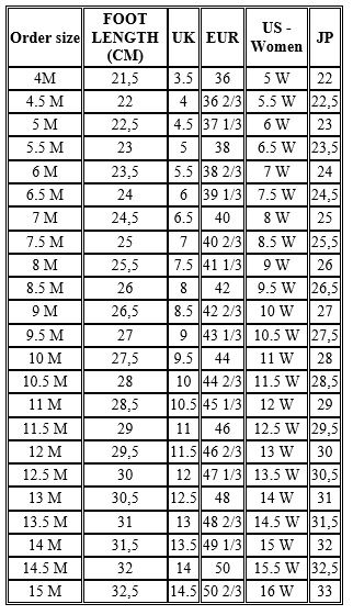 Size 36 2/3 or 37 1/3 or 38 or 40 2/3