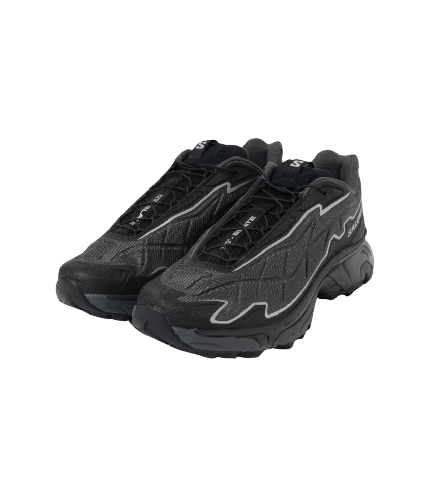 A foray into disruptive interpretations of volume, reflecting the irregular landscapes of rocky terrain and trails. XT-SLATE features a waffled and lightweight upper providing textured protection for your feet, and an Advanced Chassis bottom unit for enhanced stability.