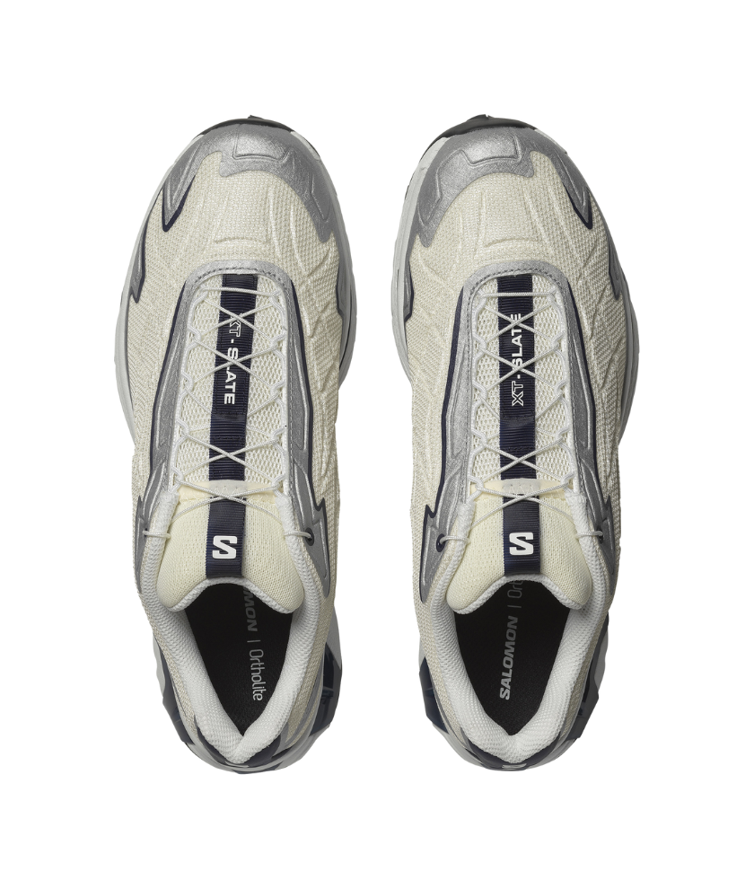 A foray into disruptive interpretations of volume, reflecting the irregular landscapes of rocky terrain and trails. XT-SLATE features a waffled and lightweight upper providing textured protection for your feet, and an Advanced Chassis bottom unit for enhanced stability.