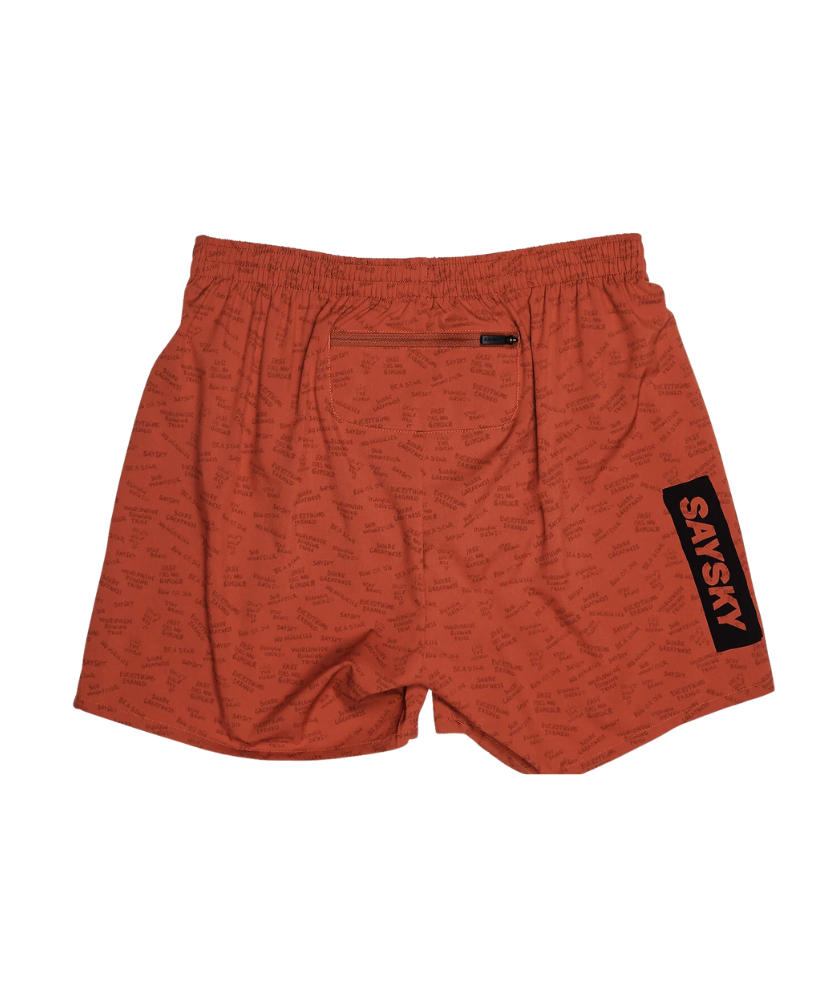 The SAYSKY Statement Pace Shorts 5" is a classic pair of running shorts - just a whole lot better. This is one of the all-time best-sellers and for good reasons. They're incredible lightweight and breathable, with a regular fit that's designed for high performance. This version is Chili Oil red with small SAYSKY statements all over.