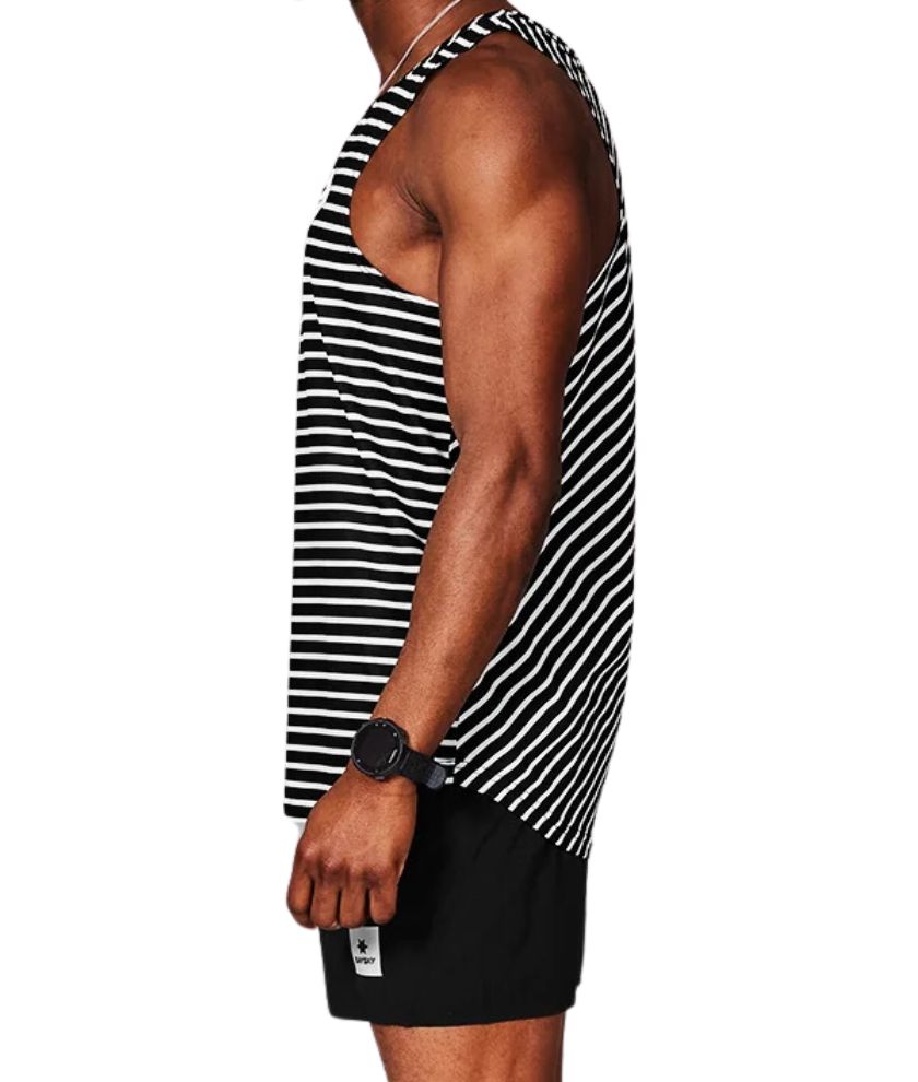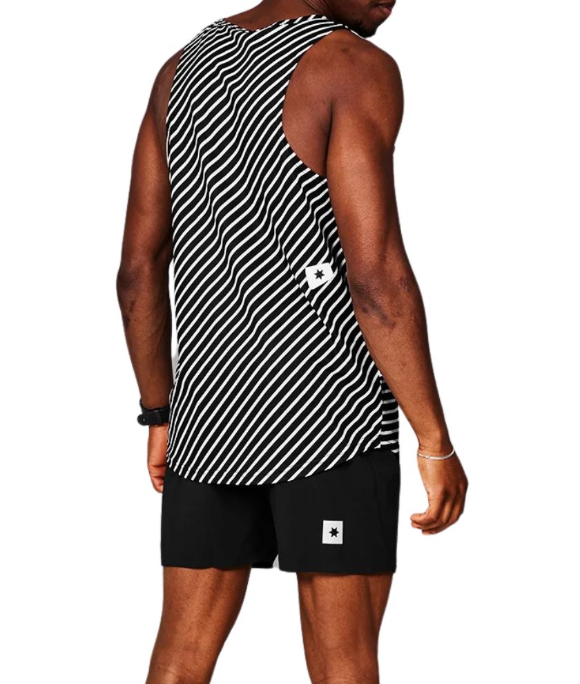 The SAYSKY Stripe Combat Singlet is a regular race singlet in striped print with asymmetrical woven labels on the front and back. The singlet is moisture-wicking and quick-drying, which ensures high breathability and increased airflow. The technical construction reduces the fabric’s ability to cling to your skin. It is made of recycled polyester, which is a high-performance lightweight material that feels soft against the skin and offers high flexibility.