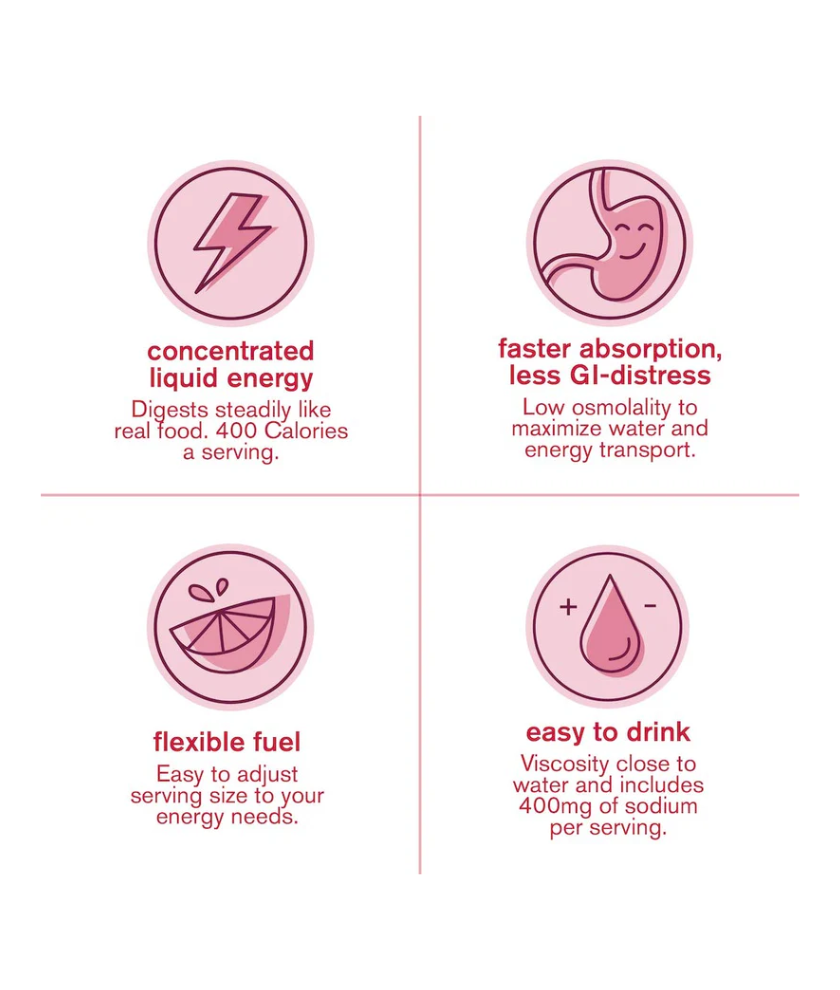 For years, we’ve preached fueling with real food, like our famous rice cakes or Energy Bars. Why? Because traditional fueling gels and drinks use carbohydrates that break down too fast to tolerate, causing gastrointestinal distress. But we get it -- you can’t always make or carry real food -- you want power in a bottle.