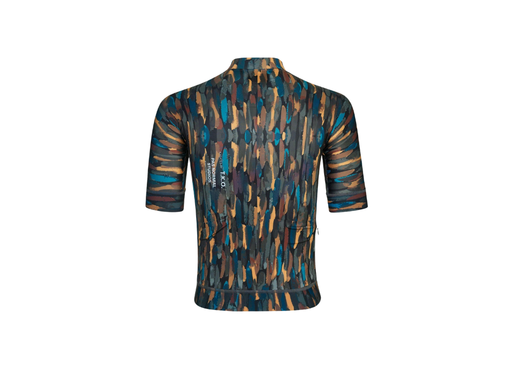 With its bold, distinctive application of watercolours, this year's collection offers up a strikingly lively appearance. Aberrant and distinct with its raglan-sleeve construction and lavished colours, this new piece completely challenges the standards of how cycling apparel should look.
