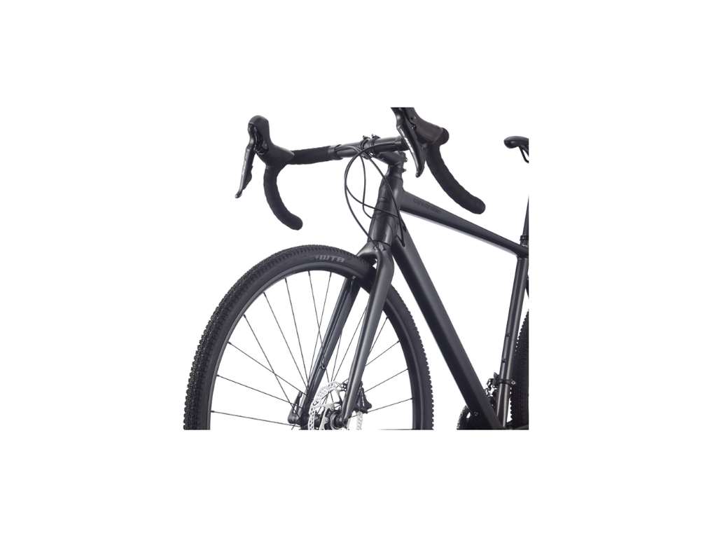 Fork : Full Carbon, 1-1/8" to 1-1/4" steerer, 55mm OutFront offset, flat mount disc, internal routing