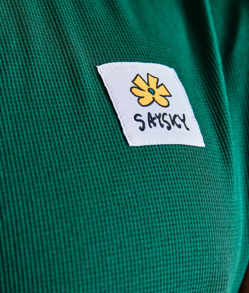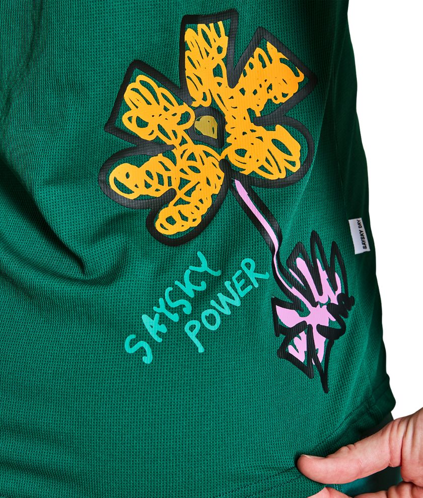 The SAYSKY Flower Combat Singlet is a regular race singlet in yellow with an allover flower print and a woven flower SAYSKY label on the front and back. The singlet is moisture-wicking and quick-drying, which ensures high breathability and increased airflow. The technical construction reduces the fabric’s ability to cling to your skin. It is made of recycled polyester, which is a high-performance lightweight material that feels soft against the skin and offers high flexibility.