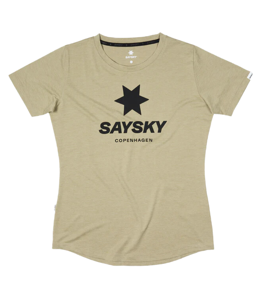 SAYSKY's Women's Logo Combat T-shirt is a women's regular fit T-shirt. The purple ash color body has a black SAYSKY logo on the front chest and a SAYSKY logo label on the back. This T-shirt has excellent moisture absorption and quick drying properties, and maintains good air flow while ensuring high breathability. It's made with a technically structured fabric that reduces clinging of the fabric to your skin. Made of 100% recycled polyester made in Japan, it is a highly functional lightweight material that is soft to the touch and highly flexible.