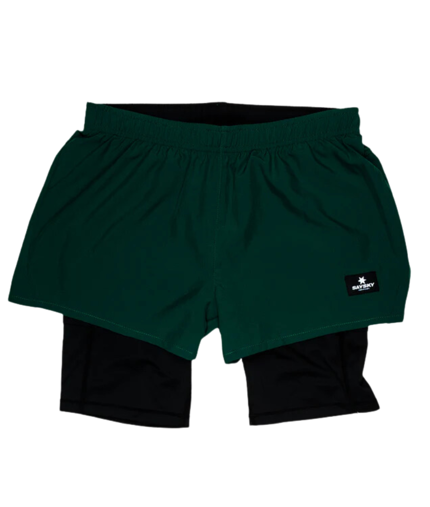 The SAYSKY Wmn's Long 2 in 1 Shorts 3'' is one of our most popular styles for women. These shorts come in dark green print and with black inner shorts. There's a woven SAYSKY label in black on the front and a classic SAYSKY print on the back. The fit is regular and they'll serve you well whether on the run or in the gym. This style is also ideal for trail running.