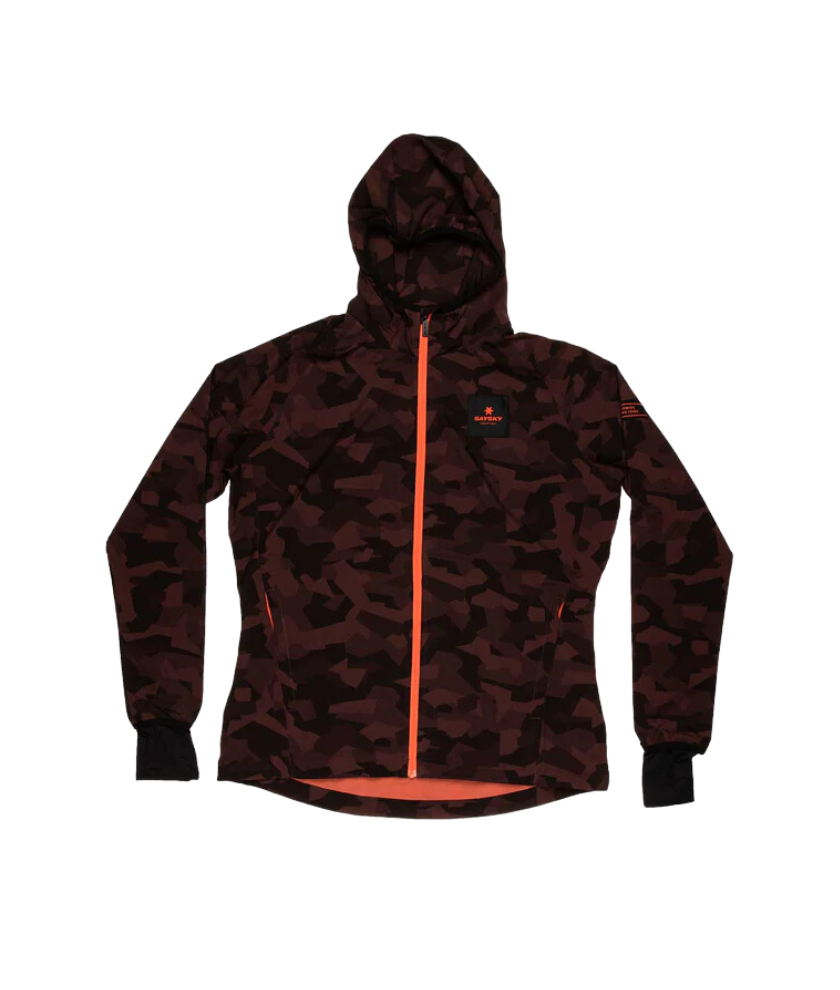 The SAYSKY Women's Splinter Pace Jacket is a running jacket for women designed to withstand the wind. The jacket comes in a burgundy splinter camo print with SAYSKY logos on the chest and the back together with a WORLDWIDE RUNNING TRIBE logo on the arm. The fabric is lightweight to provide a comfortable fit and ensure high breathability for the body.