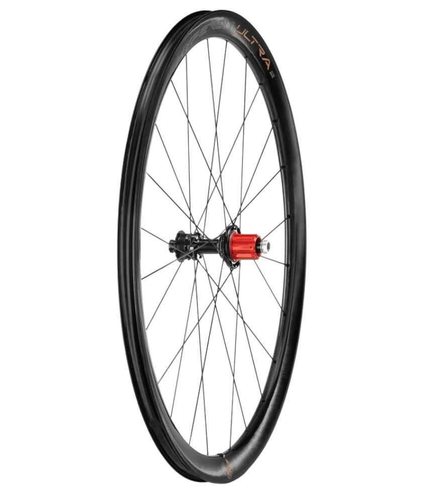 Hyperon Ultra is the new Campagnolo wheel designed for the most refined and demanding cyclists. A wheel that embodies true product perfection the result of Campagnolo's unparalleled experience. To create this jewel, Campagnolo brought together the knowledge of its engineers and most experienced testers, as well as feedback from professional cyclists. The result is a new set of road bike wheels with a perfect mix of features: lightweight construction, unparalleled responsiveness and superior handling. Campagnolo has taken H.U.L.C. molding technology and the C-LUX finish to extremes to make the Hyperon Ultra beautiful to look at and light on the scales. With the goal of enhancing the rider's riding sensations and performance, unparalleled responsiveness was achieved with the new Head-2-Bay system, created to have high-precision coupling between the spoke head and the hub, to which are applied the smooth-running CULT bearings and a new lightened version of the N3W body. To make it easy to handle, they relied on Campagnolo's historic know-how by applying the famous Aero-MoMag technology to the Hyperon Ultra wheels as well-a choice that brings aerodynamic advantages and offers better aesthetics. The rims incorporate the proven 2-Way Fit technology with a non-drilled top bridge. Their special single-point junction construction ensures and increases the stiffness of the wheel system even more. With a 21mm wide inner channel and a 37mm profile Hyperon Ultra is a wheel that fits the needs of the most demanding cyclists and enhances the aesthetics of any bicycle.
