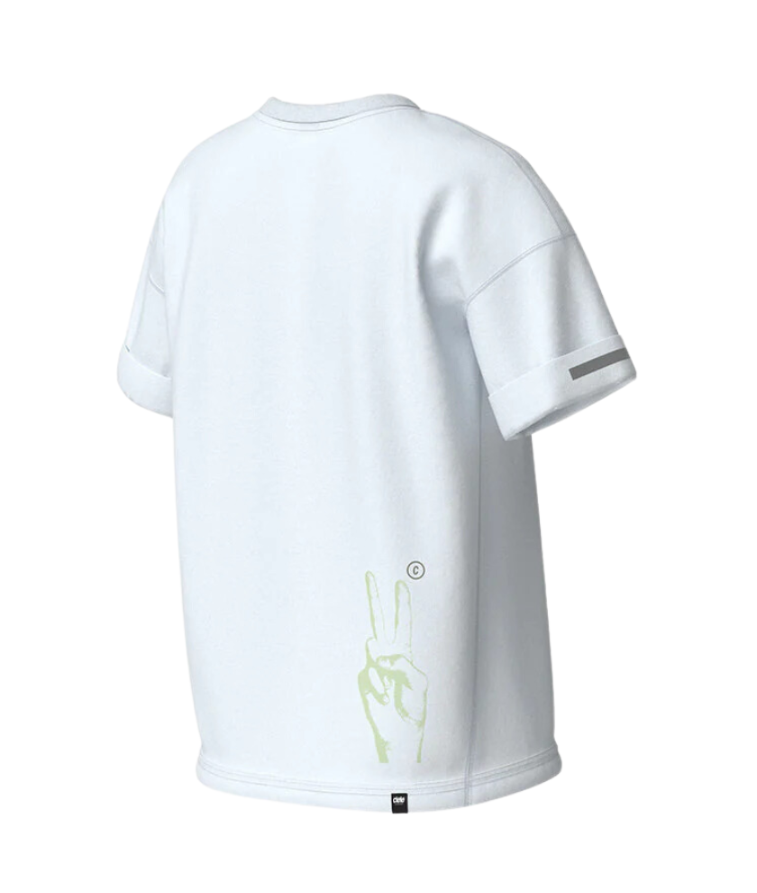 the comfort and cooling effect of GRS recycled cotton, in combination with GRS recycled polyester to bring you a moisture wicking, quick drying run ready t-shirt. we've added concealable reflective details, for that unplanned night run home, flatlock stitching for comfort, and an all natural antimicrobial to defend against unwanted odours and harmful microbes that plague your everyday activewear. the water based print is designed with breathability in mind, so it won't get wet and sticky and uncomfortable like most printed t's do during a run.