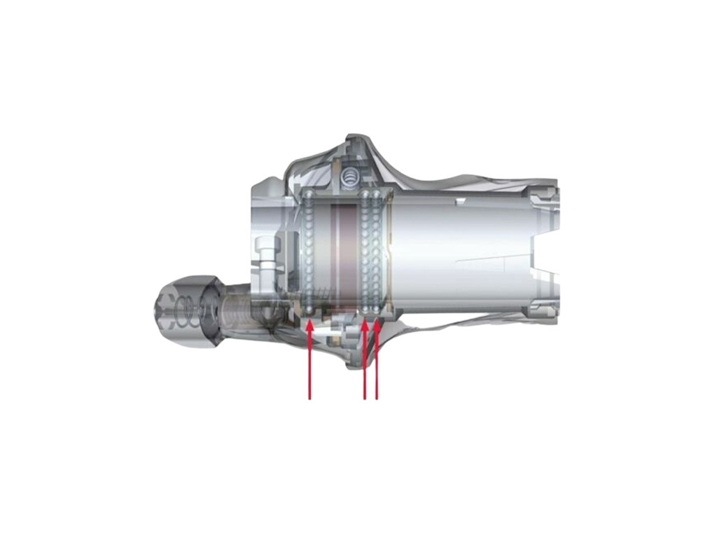 ROLLING THUNDER™ ball bearing technology: Three rows of ball bearings provide zero friction or play - reducing the force needed to shift and promoting long-term performance under all weather conditions with Grip Shift.